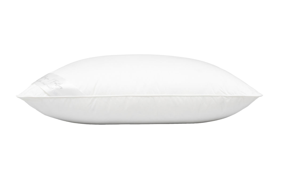 A higher down ratio gives the pillow loft and coziness, while feathers help it keep its shape and provide firmer support. It is a practical choice for those looking for a pillow that is neither too soft nor too firm.