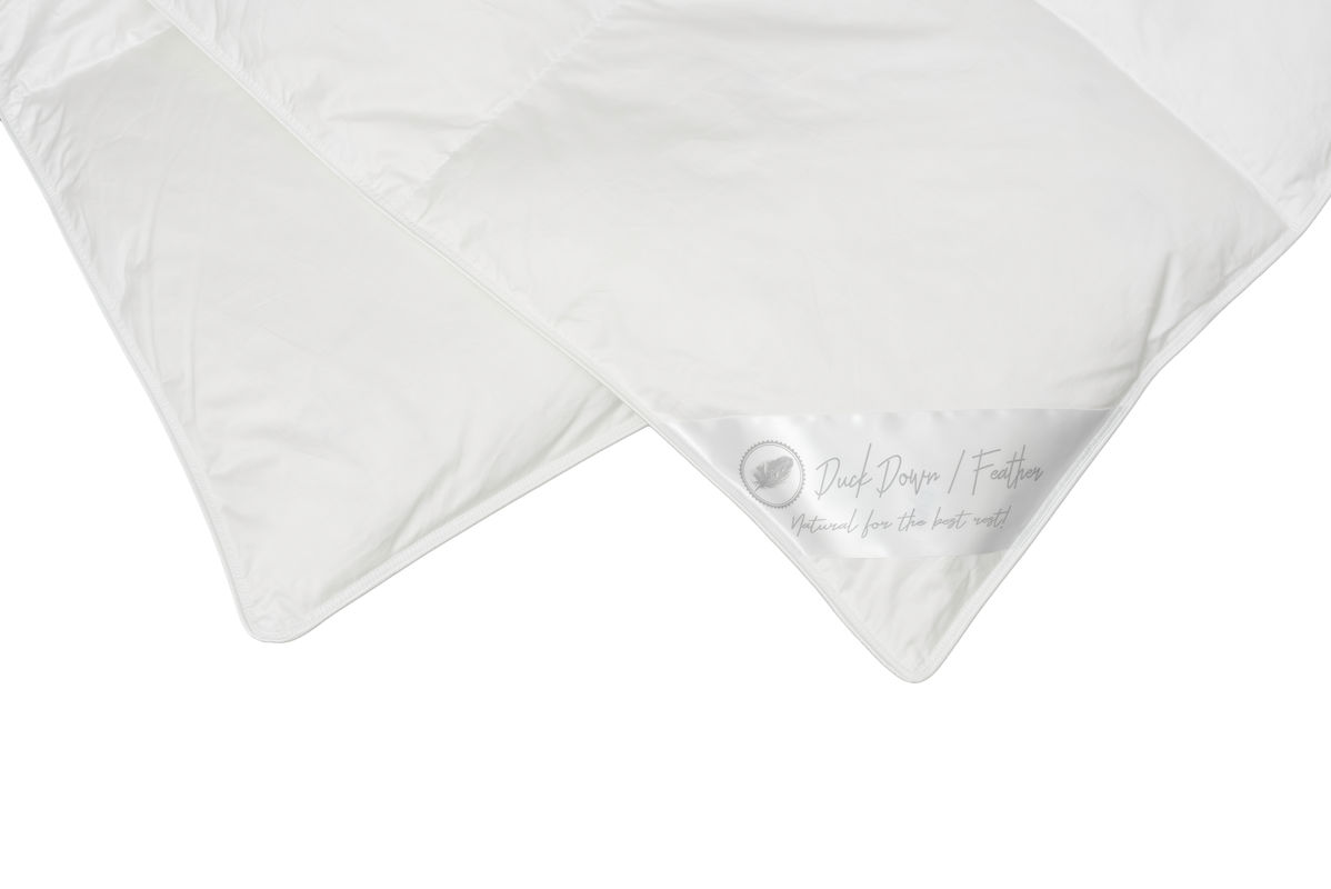 The 70/30 composition provides an excellent balance of warmth, loft and practicality. Duck down gives the duvet lightness and coziness, while feathers help the filling remain evenly distributed and keep its shape over time.